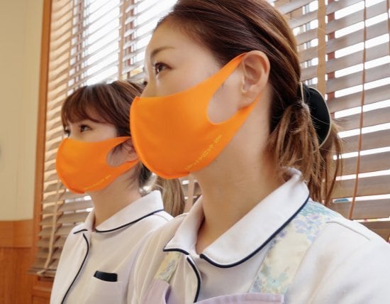 ポリエステル82%ポリウレタン18% UVカット UPF50素材生地のマスクにお客様希望の文字やロゴマークプリントしてお届け致します。